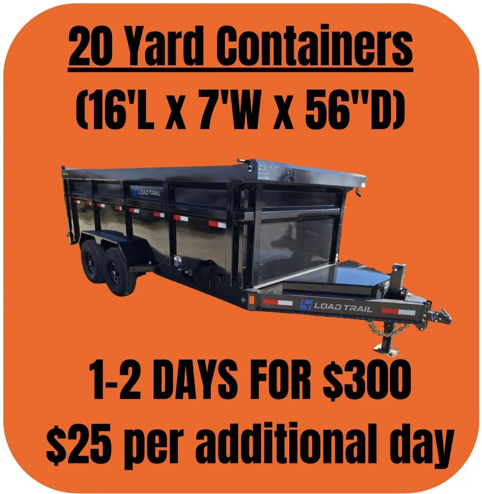20 YARD (16' X 7' X 56") DUMP TRAILER - 4 AVAILABLE